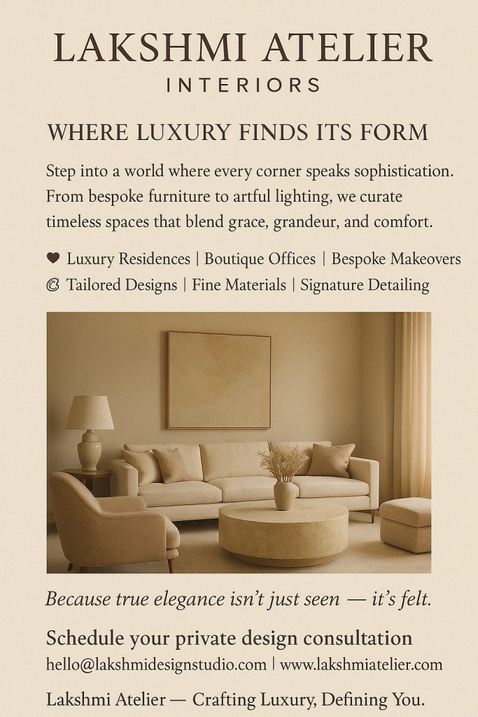 With Lakshmi atelier interiors where aesthetics meet soul.